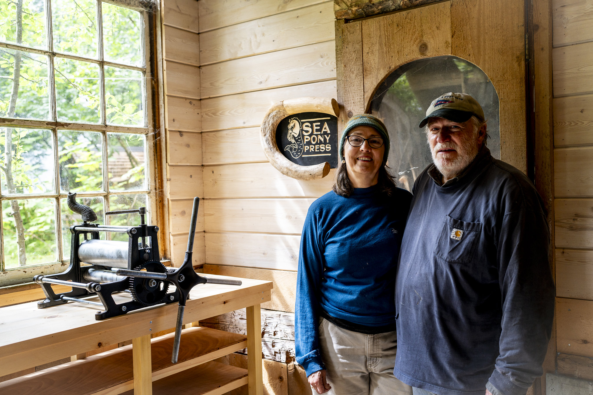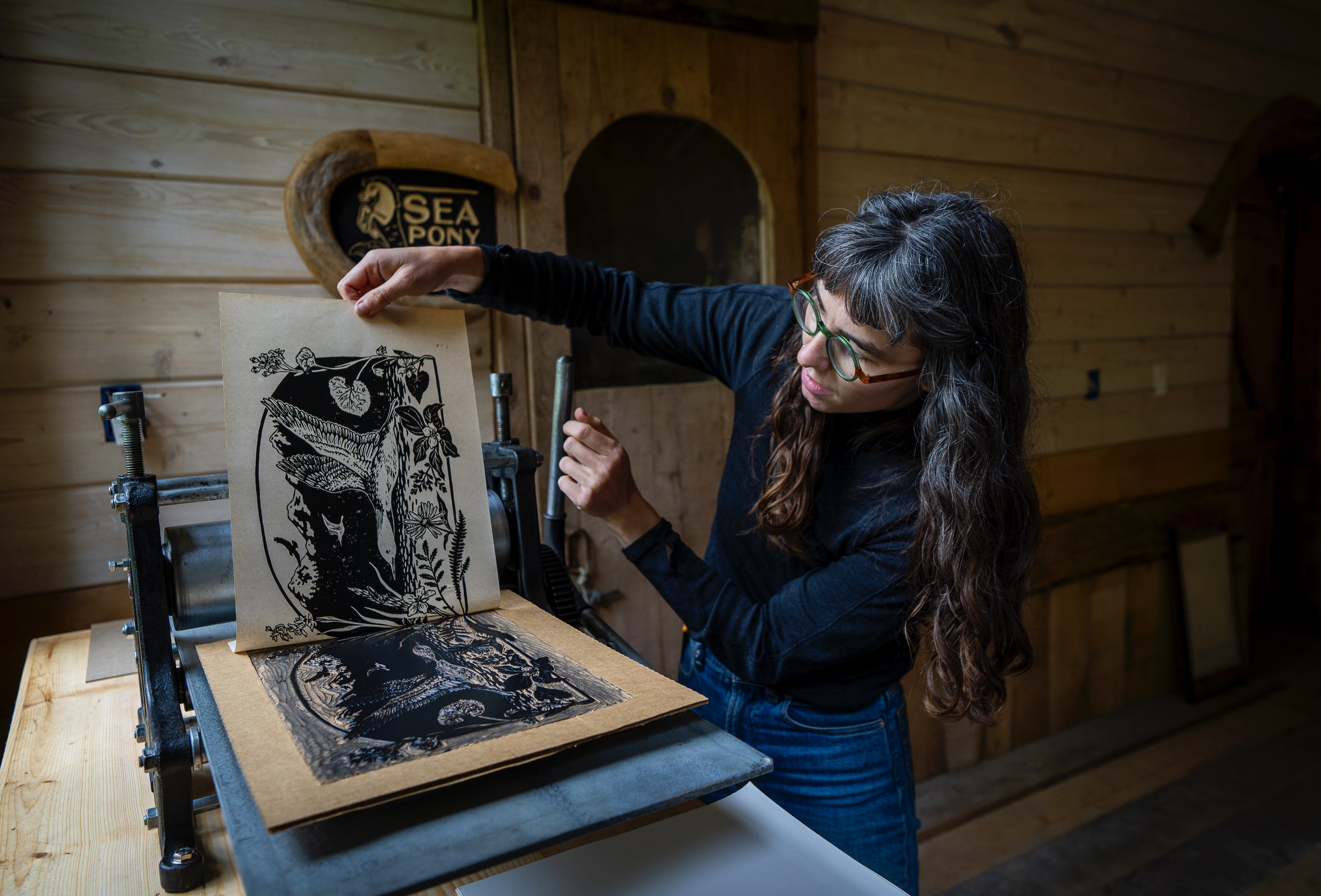 The Bealers were deeply connected to the lands and waters surrounding their home and that was reflected in both their lifestyle and art. They strived to live a life on the Sea Pony Farm where they were as self reliant as possible and used only materials that they could gather and harvest from the surrounding natural environment. Eric’s incredibly detailed wood engraving prints of nature scenes developed from moments living life in this place were sold in the community at local shops and he was well known throughout the state. His work inspired and connected people to the scenery, landscapes, and fine details of the place. The Bealers asked that SCS use the property “to continue to help and protect this land that we so love.”