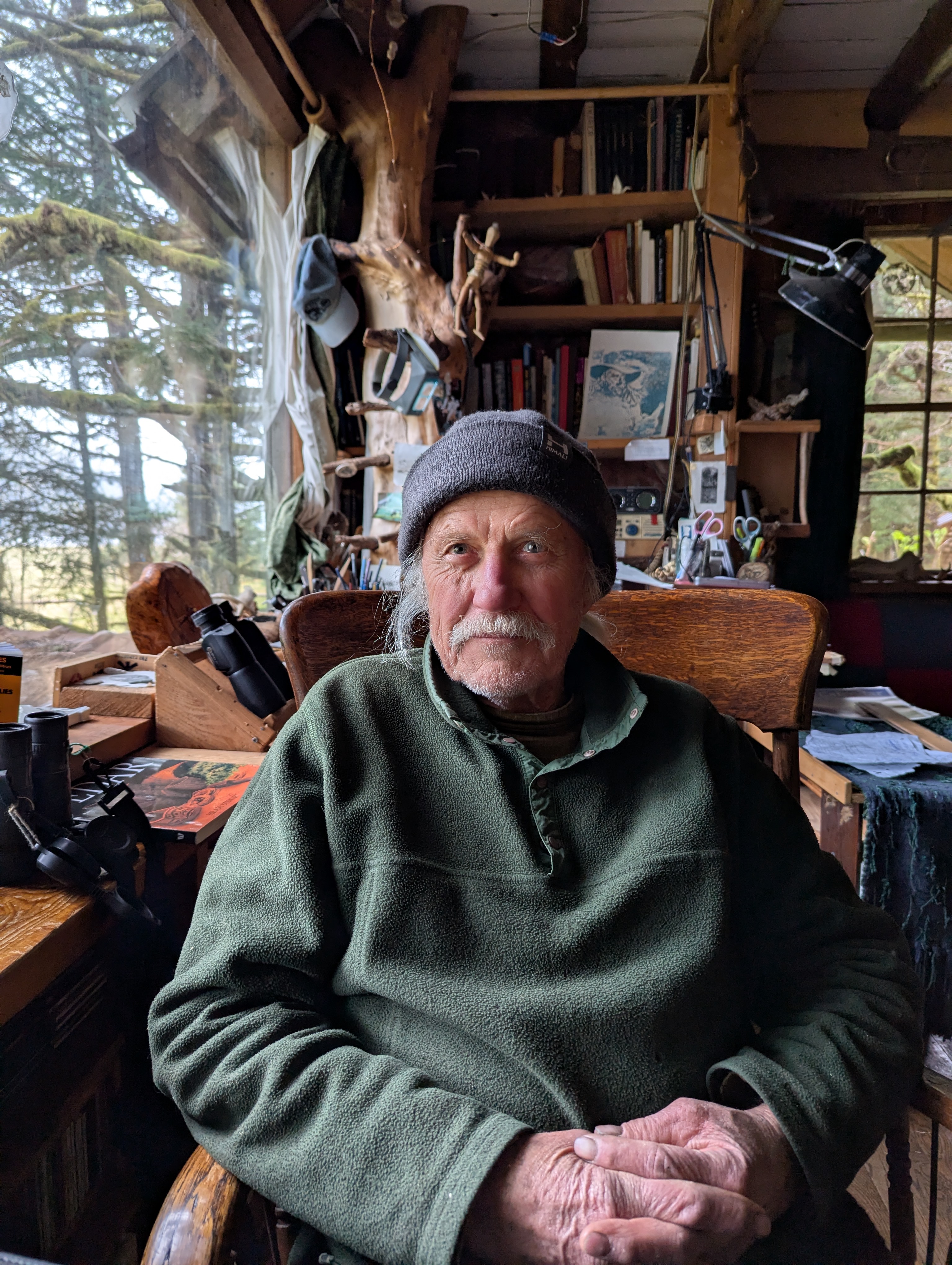 In 2018, the renowned Southeast Alaska artists Eric and Pam Bealer left their remote homestead property to the Sitka Conservation Society’s Living Wilderness Fund. The property is in the Lisianski Inlet of Chichagof Island near K’udeis’x̱’e Pelican, AK and only accessible by boat and small plane. It is surrounded by the magnificent West Chichagof-Yakobi Wilderness, which SCS original members spent years working to get established by bringing policymakers and others to the area in order for them to form their own meaningful connections to place; ones you can only get from first hand experience.